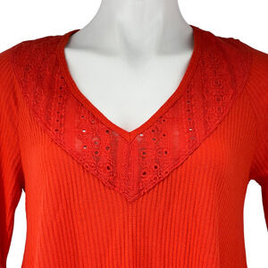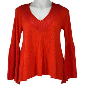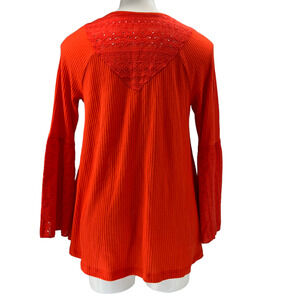 Free People Parisian Nights XS Boho Flared Sleeve Embroidered Ribbed Women's Top