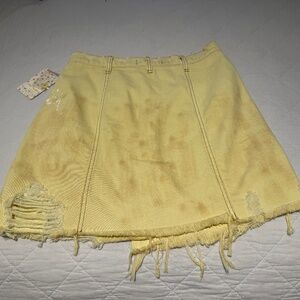 NWT Free People Parker Wrap Distressed Denim Mini Skirt in Butter Cream - Size 27. Brand New with Tags. Original Retail: $78. Smoke-Free home.