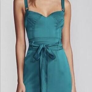 Ultra luxe and silky mini dress featuring a slim fit with a tie belt at the waist for added shape