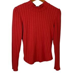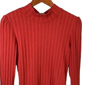 Free People Party in the Back Long Sleeve Ribbed Knit Top Canyon Red Cutout Back