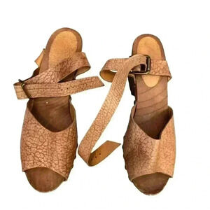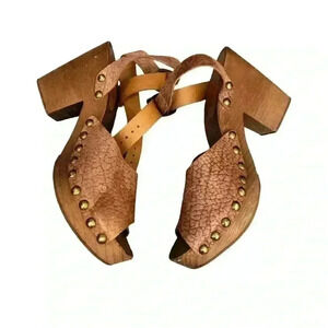 Free People Pasadena Studded Leather Wooden Clog Festival Boho Rustic Nomad