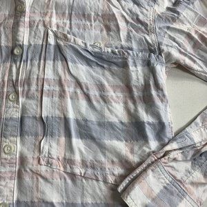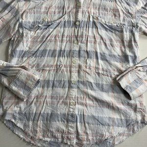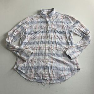 Free People Pastel Blue Pink Plaid Raw Hem Button Down Loveland Shirt Size Small.