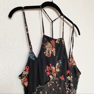 Floral print slip dress from Intimately Free People. Lightweight, strappy dress featuring cutaway shoulders and a breezy high/low skirt.
