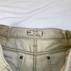Free People Patchwork Light Wash Denim Shorts Crochet Lace 25 24 Raw Hem Cutoff