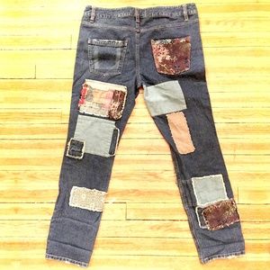 Vintage Free People patch slim slouch jeans. These are in great shape, as they never fit me right. They are made to fit slouchy.