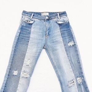 Free People Patchwork Two Tone Denim Straight Leg Denim Jeans SZ25