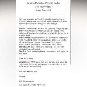 Free People Patricia Packable Poncho Puffer Size XL NWT