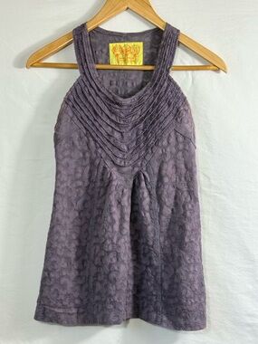 Free People Patterned Rounded V Neck Boho Racerback Tank Top