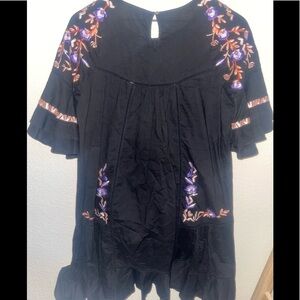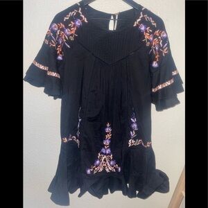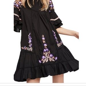 Free People Pavlo Ruffle Mini Dress Black Embroidered Small $128 OB726410