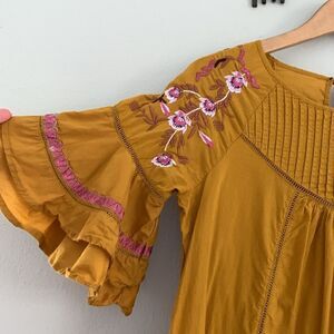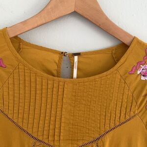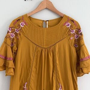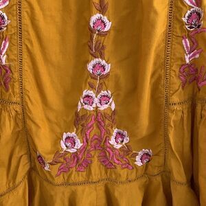 Free People Pavlo mustard yellow boho hippie floral embroidered mini dress small