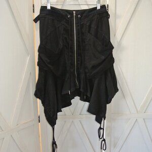 Designed in a brand-new silhouette, this super cool mini skirt features exaggerated pockets and zip-front closure with a harem-style shape for a slouchy, off-duty look.