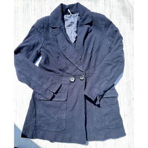 Free People Pea Coat Women Small Navy Blue Two Button Long Sleeve Collar Pockets