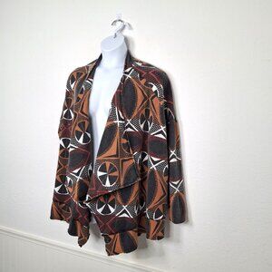 Free People Peace Sign Graphic Cardigan Sz L Oversized Artsy Boho Hippie 70s