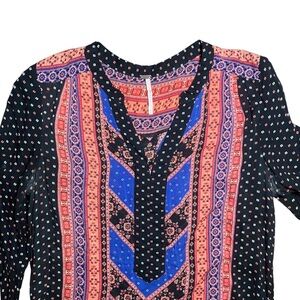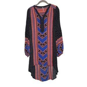 Free People Peacemaker Boho Printed High Low Peasant Tunic Mini Dress XS Small