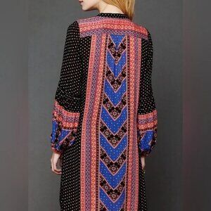 Super cute boho tunic dress from Free People with a fun pattern and high-low hem. Size Small and in great preowned condition; no visible flaws.