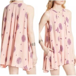 Free People Peach Pink & Purple Tree Swing Tunic Dress Size Medium