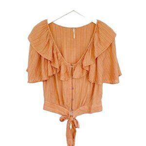 Free People Peach Ruffle Crop Top