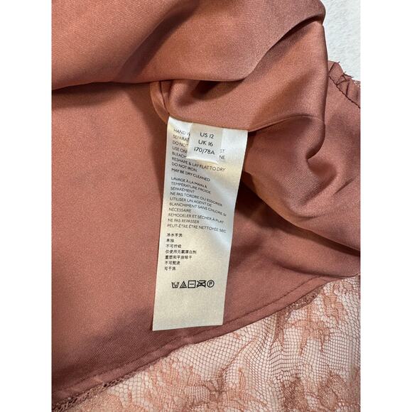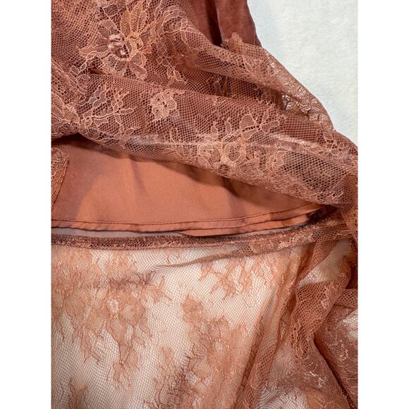 Free People Peach Velvet Lace Asymmetrical Skirt 12 Orange Large Midi Boho