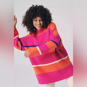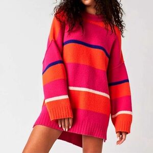 Free People Peaches Striped Oversized Sweater Pink Orange Blue XS Medium