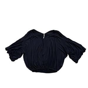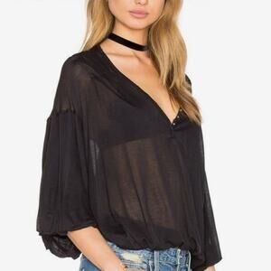 Free People Peaks Island Black Slouchy Jersey Henley Top Size XS