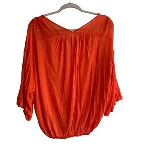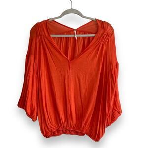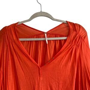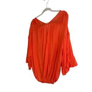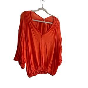 Free People Peaks Island Orange Mesh Sheer Lantern Sleeve Boho Top Size Medium
