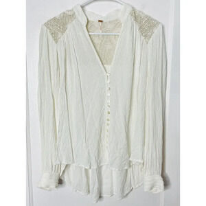 Free People Peasant Blouse S Embroidered Metallic Boho Relaxed Button Up Texture