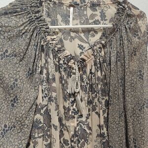 Free People Peasant Top Size Small Blouse Hendrix Print Oversized Flowy