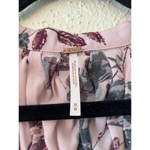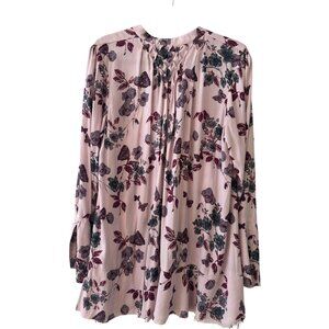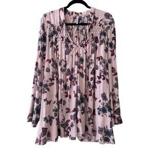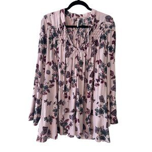 Free People Pebble Crepe Smocked Tunic Top Blouse Floral Lavender Sz M