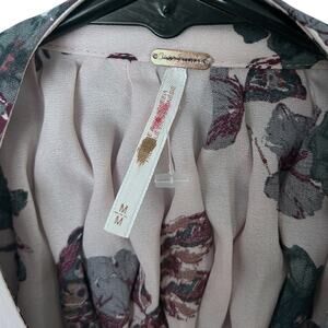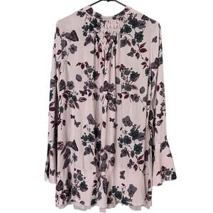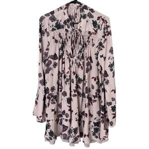 Free People Pebble Crepe Smocked Tunic Women's Med Lavender Floral Cottagecore
