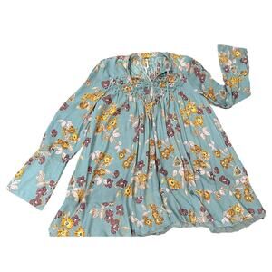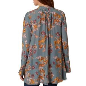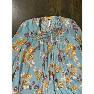 Free People Pebble Crepe Top Tunic in Blue Boho Floral Casual ~ S