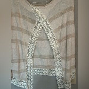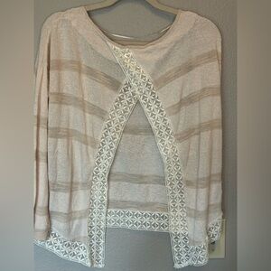 Free People 'Pebble Dash' Long Sleeve Sheer Open Back Lace Trim BOHO Cottagecore