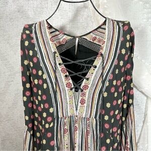 Free People Pebble Rain balloon sleeve printed mini boho dress size XS