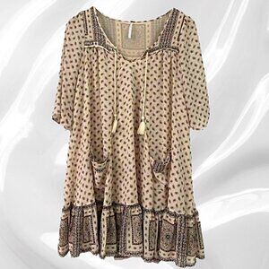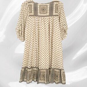 Free People Penny Lane Tea Cream Boho Paisley Floral Short Dress, Size XS