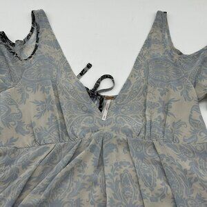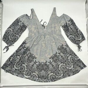 Free People Penny Lover Size Medium Gray Cold Shoulder Chiffon Tie-Up Mini Dress