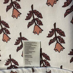 Free People Printed Penny Pull-on Flare Jeans in "Terracotta Combo / Tulip" in size 28. Classic pull-on flares are in a bold Americana-inspired print, featured in a mid-rise with an elastic waistband. Clean silhouette with a flat front & perfectly placed back pockets. Flare leg, stretch fabric, back knee seam detailing. Jeans are not pure white, they are more of an off white, eggshell, vanilla color. Great condition with a flaw, there is a little bit of pilling in the crotch area. Please see pictures for details, fabric content, condition & measurements since they are part of the description. Color combo is sold out in stores. My prices reflect the rarity of my items and what I paid for them. Flaw is already considered in listing price. Reasonable offers welcome.