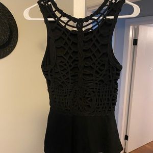 Worn once! Adorable peplum top from Free People. Gorgeous woven detail on back. Perfect for a night out. MAKE AN OFFER ☺️