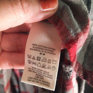 Free People Peppy In Plaid Gray Red Button Up Ruffle Back Oversized Blouse