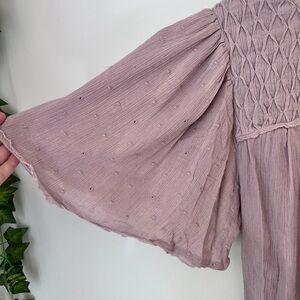 Free People Perfect Catch Lavender Bodysuit Open Back Bell Sleeve Boho Smocked