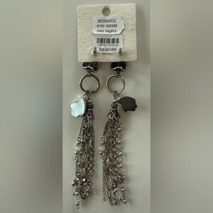 Chic silver earrings with gray accents. Features intricate chain and bead details. Perfect for stylish flair.