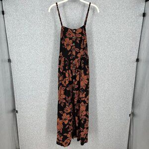Free People Perfect Sundress Size S Black Dark Floral Linen Button Front Midi