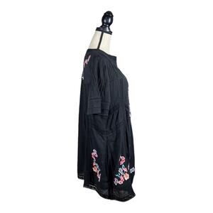 Free People Perfectly Victorian Mini Dress in a size Small. Has a button back keyhole. Lined. Crinkled voile fabric. Multi color floral embroidery with crochet seams. Measures approx.. 18 1/2" armpit to armpit, 32 1/2" in length. 100% Cotton. In great condition.