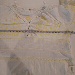 Free People Persuasion Embroidered Peasant White & Yellow Top Size Small