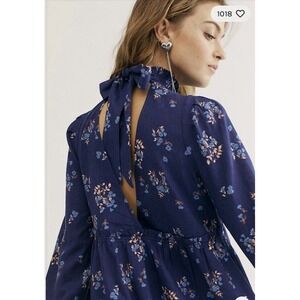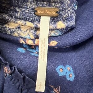 The Free People Petit Fours Boho Linen Blend Tiered Mini Dress in Size Small in Indigo is a stylish and versatile piece perfect for various occasions such as travel, weddings, parties, casual outings, work, and business. This floral patterned dress features long sleeves, a pullover tie closure, and a short dress length with a ruffled, layered, and bow accents. Made from a comfortable linen and rayon blend, this dress is ideal for all seasons with its bohemian and colorful theme. With its cut out and smocked details, this dress offers a unique and trendy look for any fashion-forward woman.