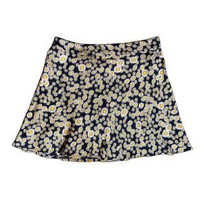 Free People Phoebe Daisy Swing Skirt Floral Black White Yellow Silky Size 12