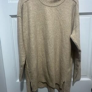 Features: Soft knit fabrication, crew neckline, ribbed trim throughout, side slits, drop-shoulder sleeves