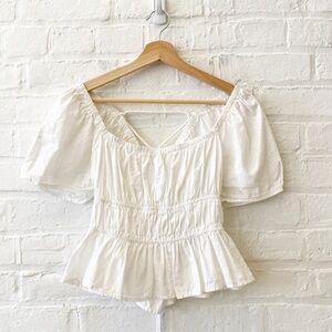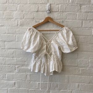 Free People || Phoebe Smocked Puff Sleeve Lace Up Open Back Top White XS