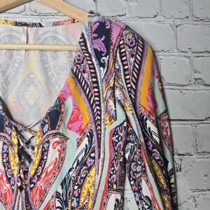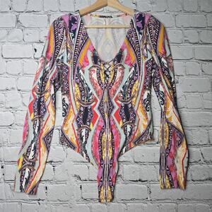 Free People Pick A Place Bodysuit Lace Up V-Neck Detail Long Sleeve Size Large