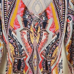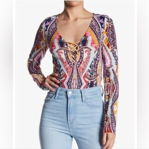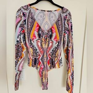 Free People Pick A Place Printed Bodysuit Boho Colorful Paisley Long Sleeve