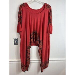 Free People Pick Me Up Tee Asymmetrical Hem Boho Top Small Coral Pink Dolman