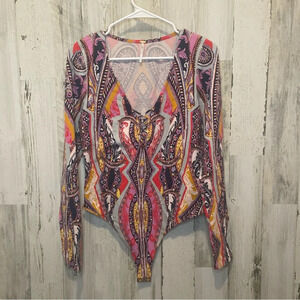 Free People Pick a Place V-Neck Bodysuit- Boho Abstract Paisley Print size L